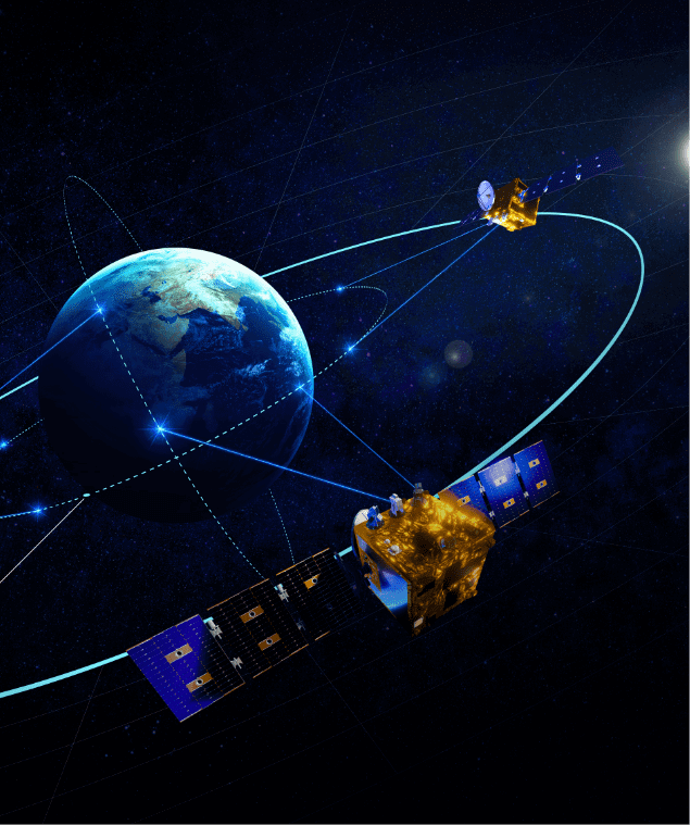 そこで、光通信機器を搭載した3基の中継衛星を高度1万キロメートルの